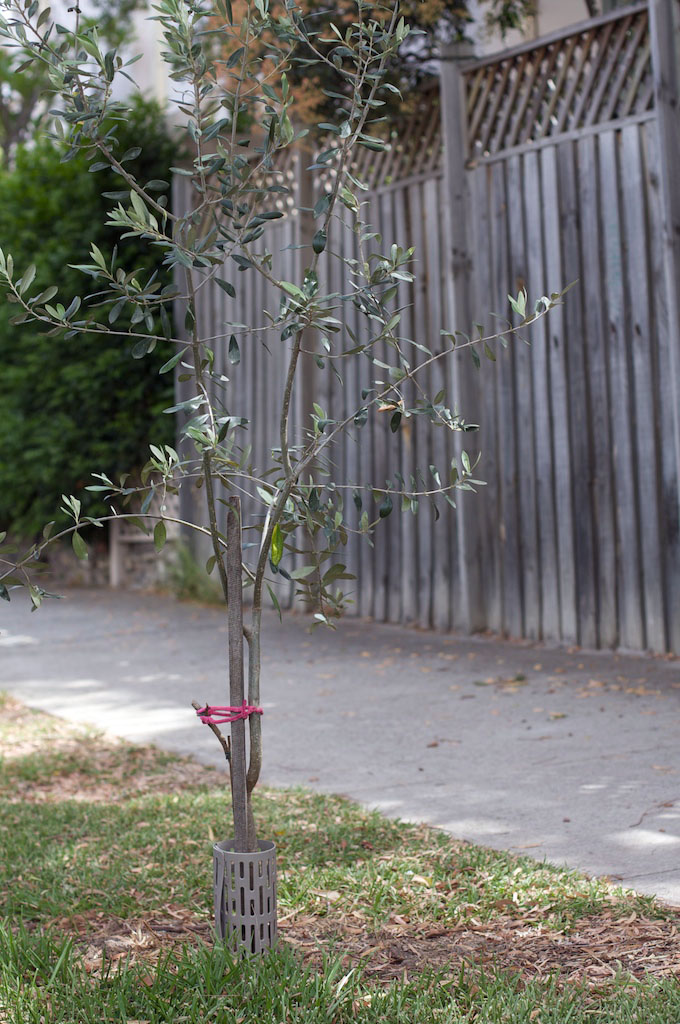 After some further discussions, he revealed that he had two olive trees that had outgrown their pots, and was wondering whether they could be planted into the nature strip in front of their house. I said: why not! The following weekend they went into the nature strip, and they’re growing well a month or two later.