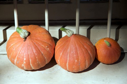 (And yes, the third pumpkin is tiny. For some reason it decided to stop growing at that point, and waste-not-want-not…)