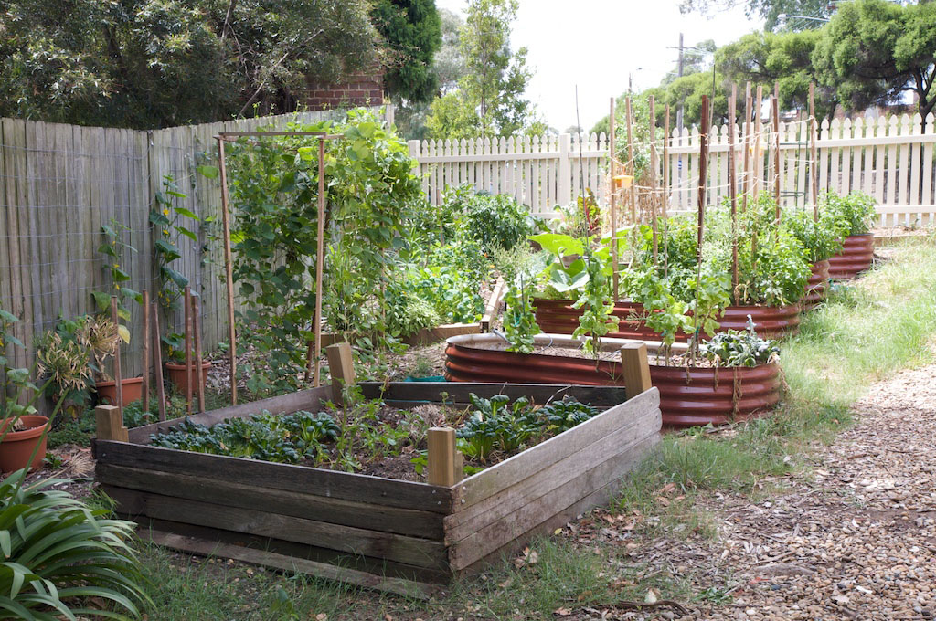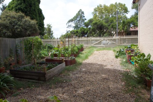 I’ve had a few comments from blog readers asking for a view of the whole vege garden. So here it is!