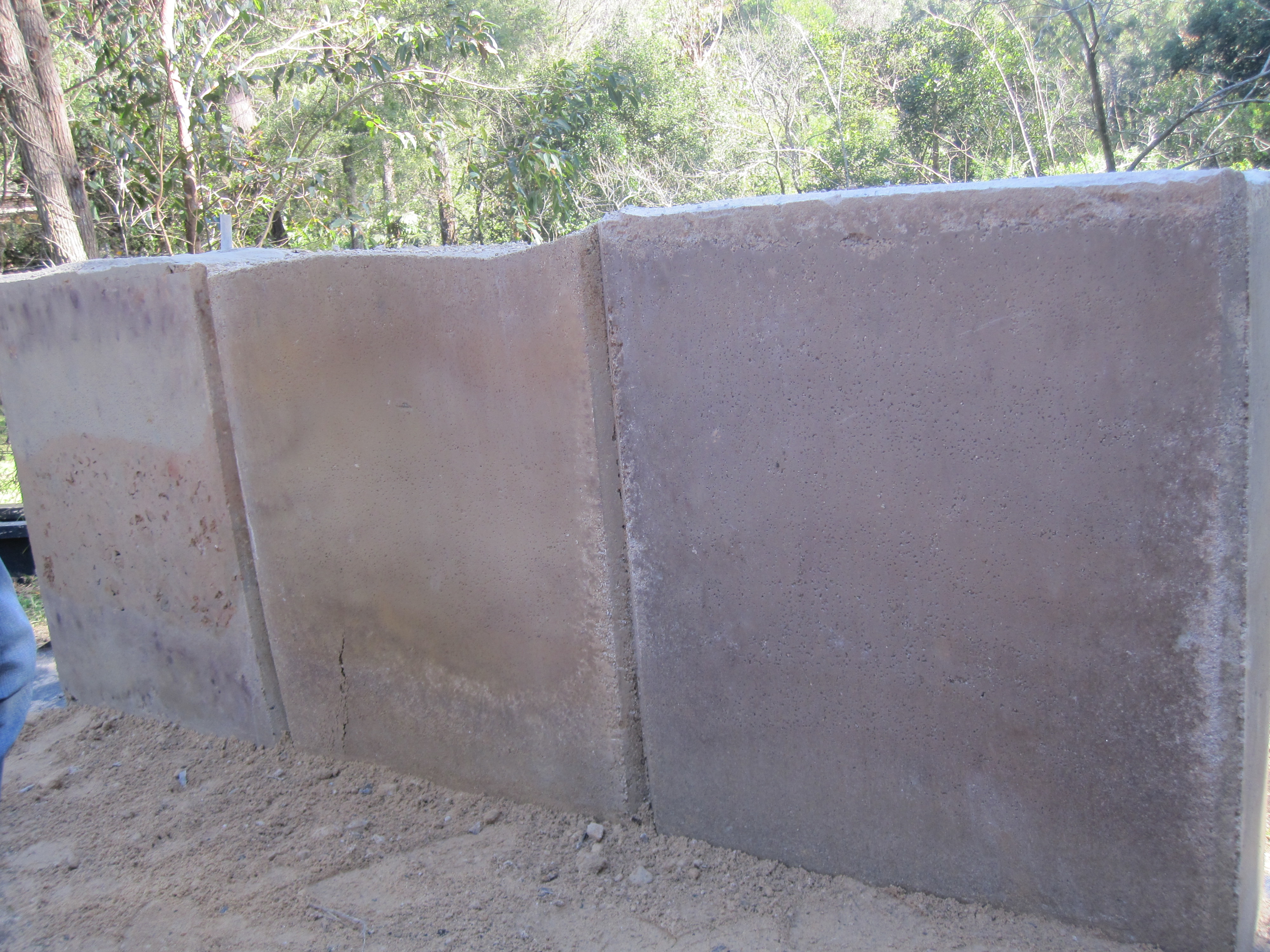 It turns out there are only a few people who specialise in rammed earth walls, and they’re all very friendly. We’ve picked Robert Cotterill from Rammed Earth Solutions, located on the Central Coast of NSW. He’s been spectacularly helpful from the outset, and it was good fun visiting his property to see some sample walls (above and below). Apparently it will only take a few days to construct our quite large wall, and the costs are very reasonable. It’s also a lot more environmentally friendly than concrete!