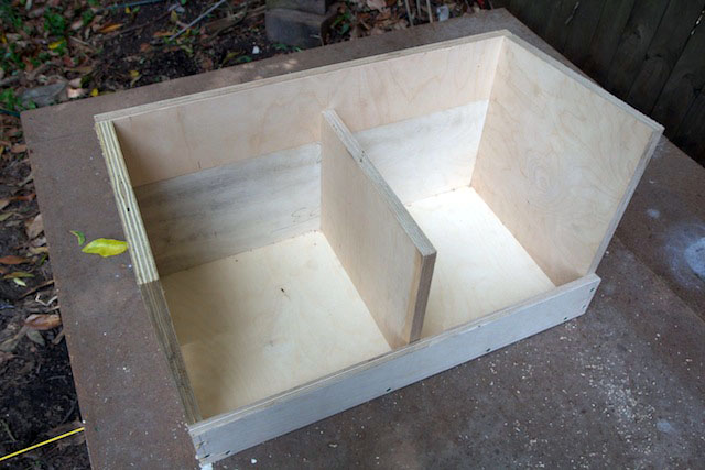 - The nesting boxes are made out of recycled eco-ply from the kitchen, and they give easy external access (for when they finally decide to start laying!).
