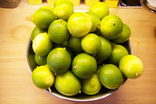 The photo above shows our first real harvest of citrus. Noting that the lime tree was weighed down by fruit, I harvested a bucket’s worth. This turned out to be 45 limes, from a tree not as high as my shoulder. That’s more like it 🙂