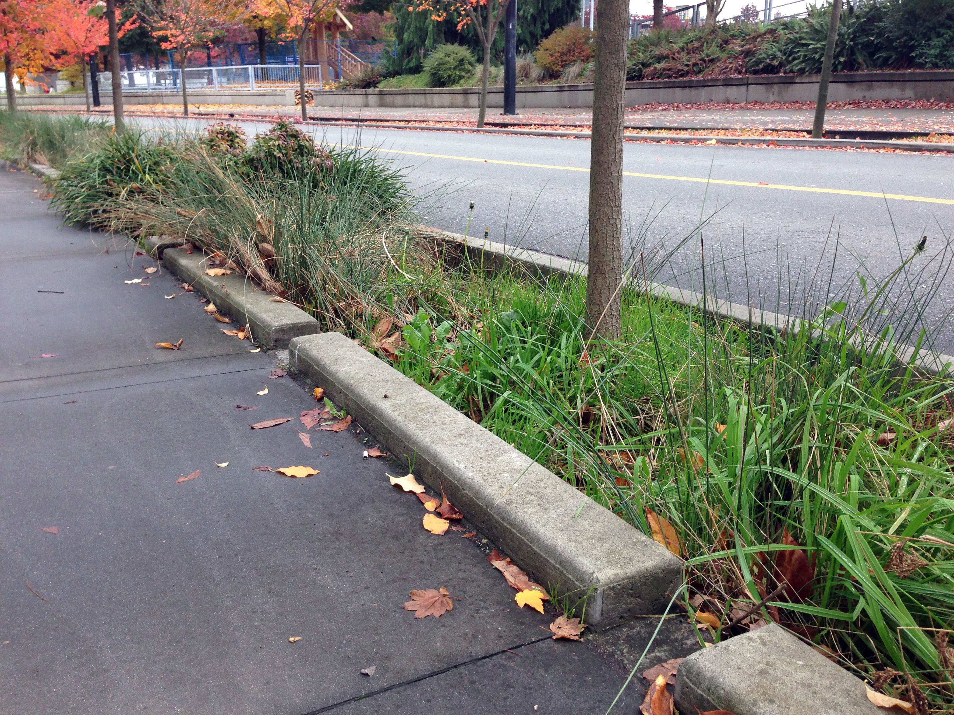 This includes a green roof on top of a skyscraper (above), and community gardens squeezed into unused spaces (below). There were also a few rain gardens, which looked to have been installed as part of the preparation for the Winter Olympics, which were held here a few years back.