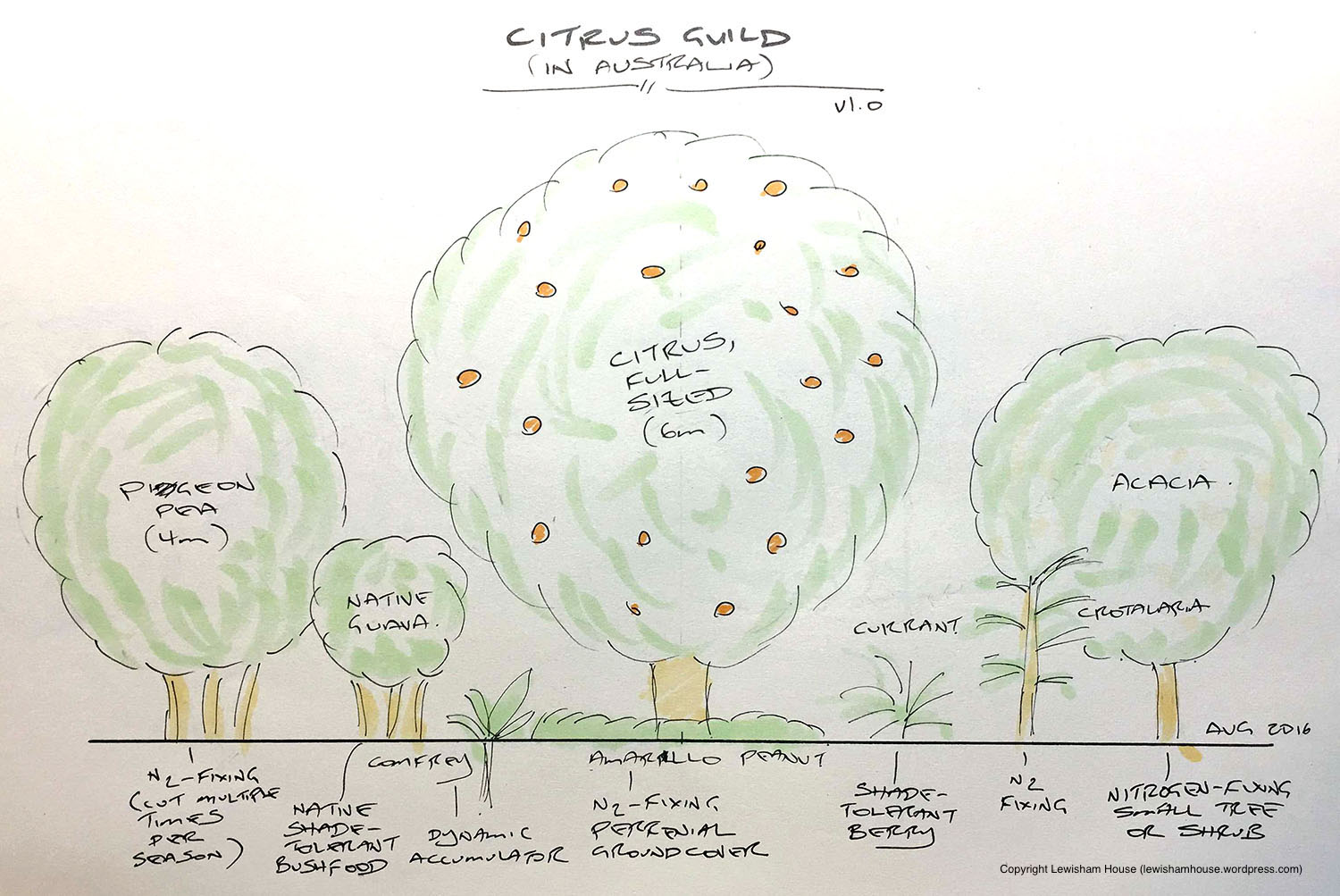 - Citrus trees are gross feeders. So the guild has to produce a lot of nitrogen, and other fertilisers, to support the citrus.